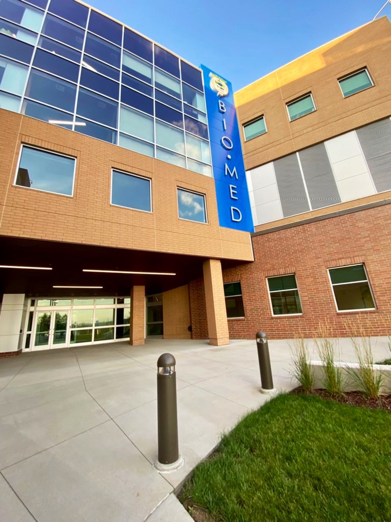 The large addition is in a prominent location on campus requiring thoughtful design for a complex connection to the existing building. Basic science courses are taught by department faculty in large lecture halls. As part of the stem schools curriculum.